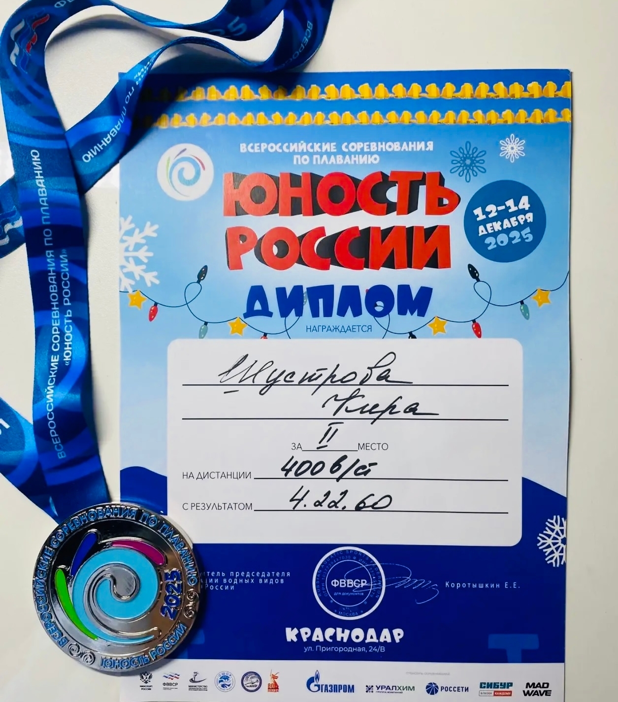 🏊🏻♀️ С 12 по 14 декабря, в городе Краснодар прошли Всероссийские соревнования по плаванию среди юношей и девушек 11-13 лет «Юность России».