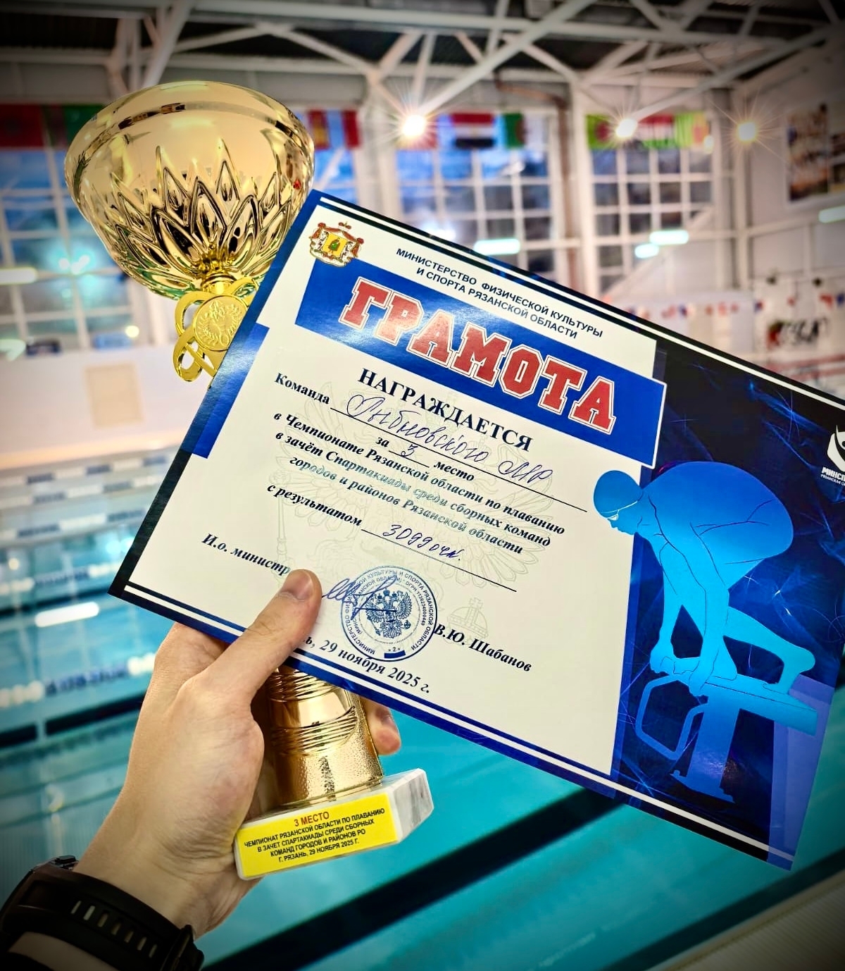 🏊🏼♀️ Сегодня, в составе сборной команды, наш инструктор по спорту Антон Бобров завоевал бронзовую награду в командном зачете и эстафетном плавании на Спартакиаде трудящихся среди сборных команд городов и районов Рязанской области 👏👏👏